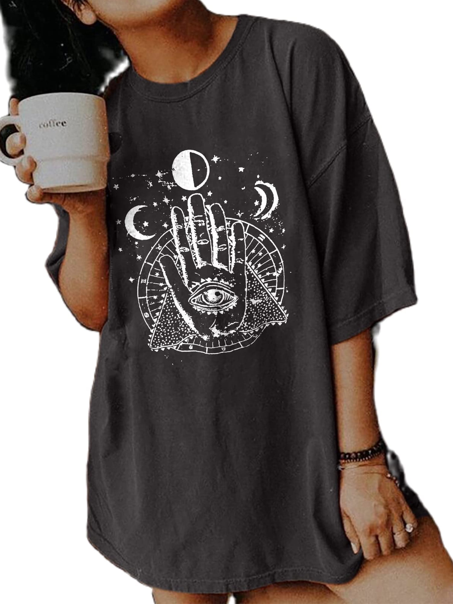 Oversized lounge shirt Clearance, Wsevypo Oversized T Shirts for Women Round Neck Vintage Graphic Aesthetic Printed Street Style Lounge Wear Cover Butt Tee Tops, Women's, Size: Small Clearance