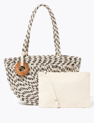 M&s woven bag Clearance, Woven Beaded Handle Bucket Bag | M\u0026S Clearance