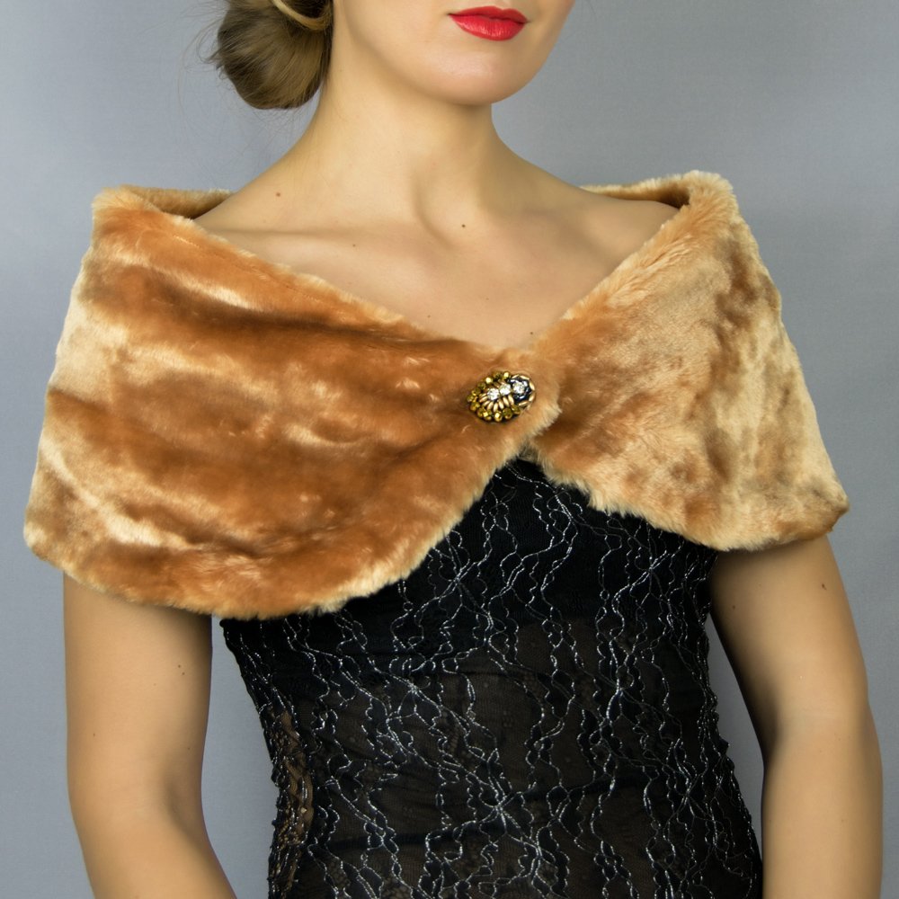 Gold fur wrap Clearance, Faux fur wrap shrug stole gold brown Clearance