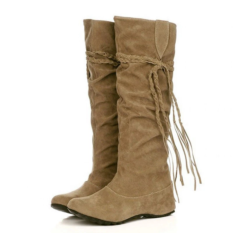 Botas de mujer talla 43 Clearance, Zapatos de talla grande 34 43 Botas de Mujer hasta la rodilla Zapatos de Mujer con forma de cuña Botas femeninas borlas de encaje Botas Mujer Zapatos Mujer XKD2102|Botas a media pantorrilla| - Clearance