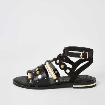 - River island black gladiator sandals clearance