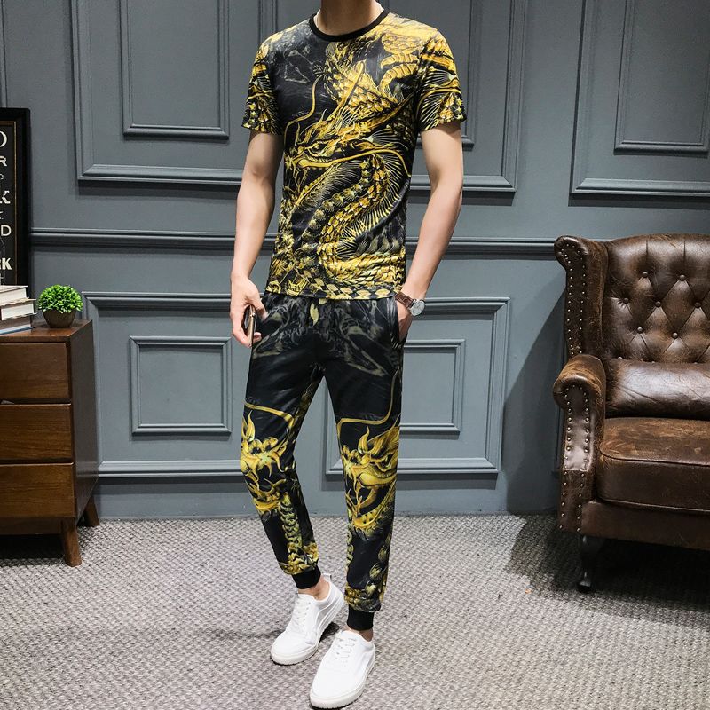 Ensemble mode homme Clearance, Acheter Nouveau 2019 Été Ensemble Ensemble Homme Dragon Pantalon Costume Mens Or Imprimé Roupa Masculina 5XL Mode Hommes T Shirts Et Shorts Ensembles De 35,57 € Du Fabian05 | Fr.DHgate.Com Clearance