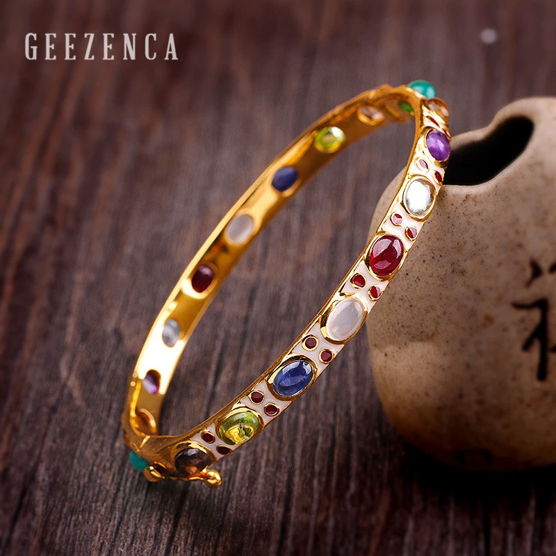 Bracelet or et pierres précieuses Clearance, 925 argent Sterling couleur pierres précieuses cloisonné fait à la main artisanat bracelets Vintage ethnique Bracelet bracelets bijoux fins pour les femmes | AliExpress Clearance