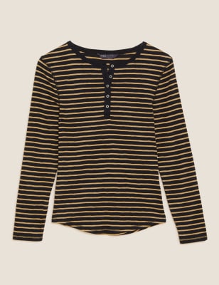 Striped henley shirt Clearance, Pure Cotton Striped Long Sleeve Henley Clearance