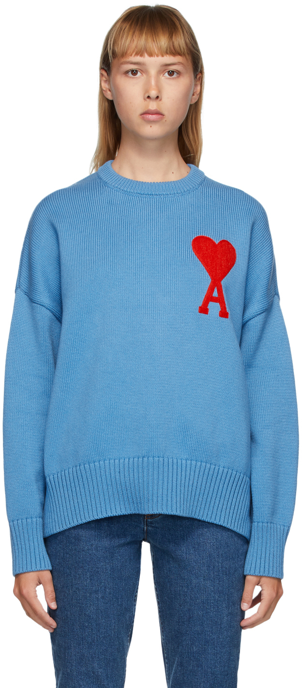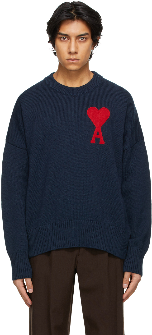 Pull ami bleu Clearance, Pull Ami Coeur Bleu Marine AMI Alexandre Mattiussi | L'Exception Clearance