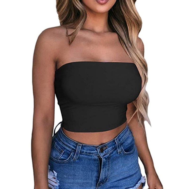 Blusa bandeau Clearance, Mujer Corpiño Top Tubo Elástico del hombro Blusa Sin Tirantes Bandeau Crop Top Tendencia | eBay Clearance