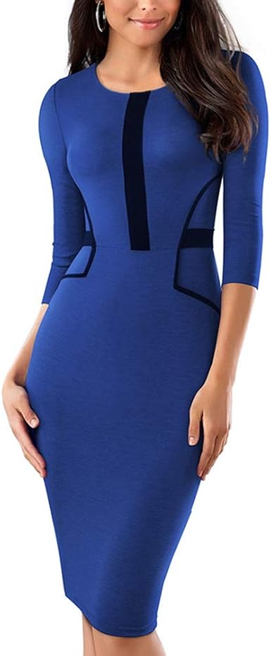 Robe pour travailler Clearance, XIGUAK Femmes Vintage Bureau Business Robe Moulante Col Rond Manches 3/4 Patchwork Genou Longueur Robe Crayon Porter pour Travailler: Amazon.fr: Vêtements et accessoires Clearance