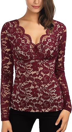 Haut dentelle manche longue Clearance, Djt Femme T-Shirt Haut en Dentelle Lace Tops a Manches Longues Col V Violet XXL: Amazon.fr: Vêtements et accessoires Clearance